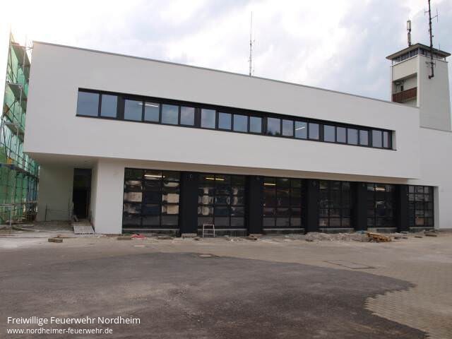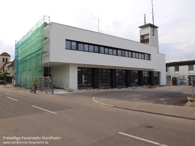 Als nächstes werden nun der Hof neu gepflastert und die Außenanlagen gestaltet. Im Gebäude läuft der Innenausbau weiter. Die Fahrzeughalle im Erdgeschoss mit zwölf Stellplätzen für die Feuerwehr ist bereits fast fertiggestellt. Im ersten Stock nehmen derzeit die Büros und die Räume der Leitstelle Gestalt an.