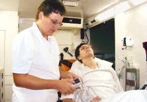 Auf dem Rückweg, der meist in die nächste Klinik führt, ist das dann kein Problem mehr: Der Rettungssanitäter lenkt den Wagen, während sie den Patienten überwacht. Das Rettungswagen-Team ist dem Notarzt unterstellt. Dieser kam im Stadt- und Landkreis Heilbronn im Jahr 2007 immerhin 4485 Mal zum Einsatz. Daniela Völker fordert ihn immer dann an, wenn Medikamente verabreicht werden müssen. Oder wenn es ihrer Meinung nach „zu heiß wird“: akute Lebensgefahr. Das ist aber zum Glück selten der Fall. „Wir treffen auch nicht immer auf blutüberströmte Leute, wie man es im Fernsehen sieht. Film und Realität klaffen da weit auseinander“, erklärt die 42-Jährige. In den meisten Fällen handelt es sich um internistische und chirurgische Notfälle.