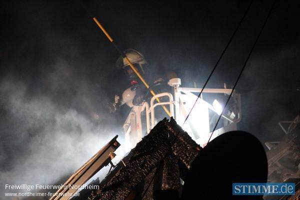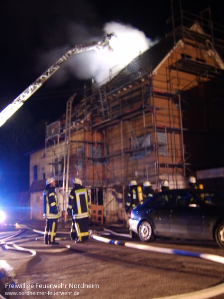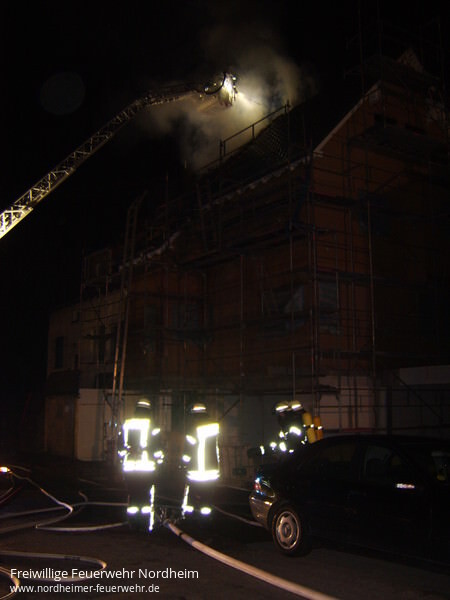 In der Nacht von Dienstag auf Mittwoch geriet ein im Rohbau befindliches Wohnhaus in Nordheim "Im Langen Rain" in Brand.