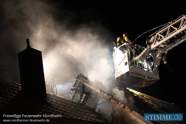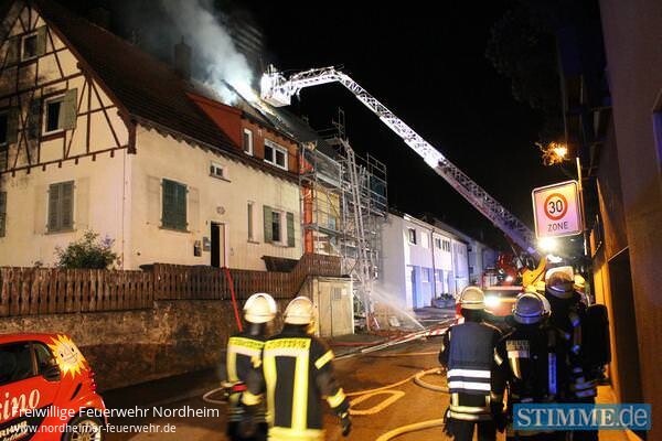 Zu einem "Dachstockbrand, Menschenleben in Gefahr" in Nordheim wurden die Freiwilligen Feuerwehren Nordheim und Lauffen durch die Integrierte Leitstelle inmitten der Nacht von Dienstag auf Mittwoch gerufen.