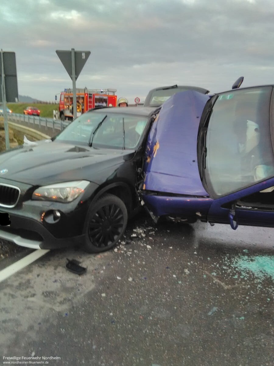 Drei Verletzte wurden nach einem Unfall am vergangenen Dienstag bei Nordhausen vom Rettungsdienst in ein Krankenhaus gebracht. Kurz nach 16 Uhr fuhr ein 35-Jähriger von Hausen kommend in Richtung Nordhausen. Kurz vor dem Ortseingang Nordhausen übersah er an der dortigen Kreuzung offenbar den PKW einer von Nordheim in Richtung Brackenheim fahrenden 21-Jährigen. Die Frau riss ihren VW Polo ruckartig nach rechts, um einen Zusammenstoß zu vermeiden. Durch das Ausweichmanöver prallte ihr Wagen gegen den an der Einmündung stehenden BMW einer wartenden 51-Jährigen. Die beiden Autofahrerinnen erlitten schwere, die 24 Jahre alte Beifahrerin im Polo leichte Verletzungen. Die BMW-Fahrerin wurde durch die Wucht des Zusammenpralls in ihrem Wagen eingeklemmt und musste von der Freiwilligen Feuerwehr Nordheim befreit werden.